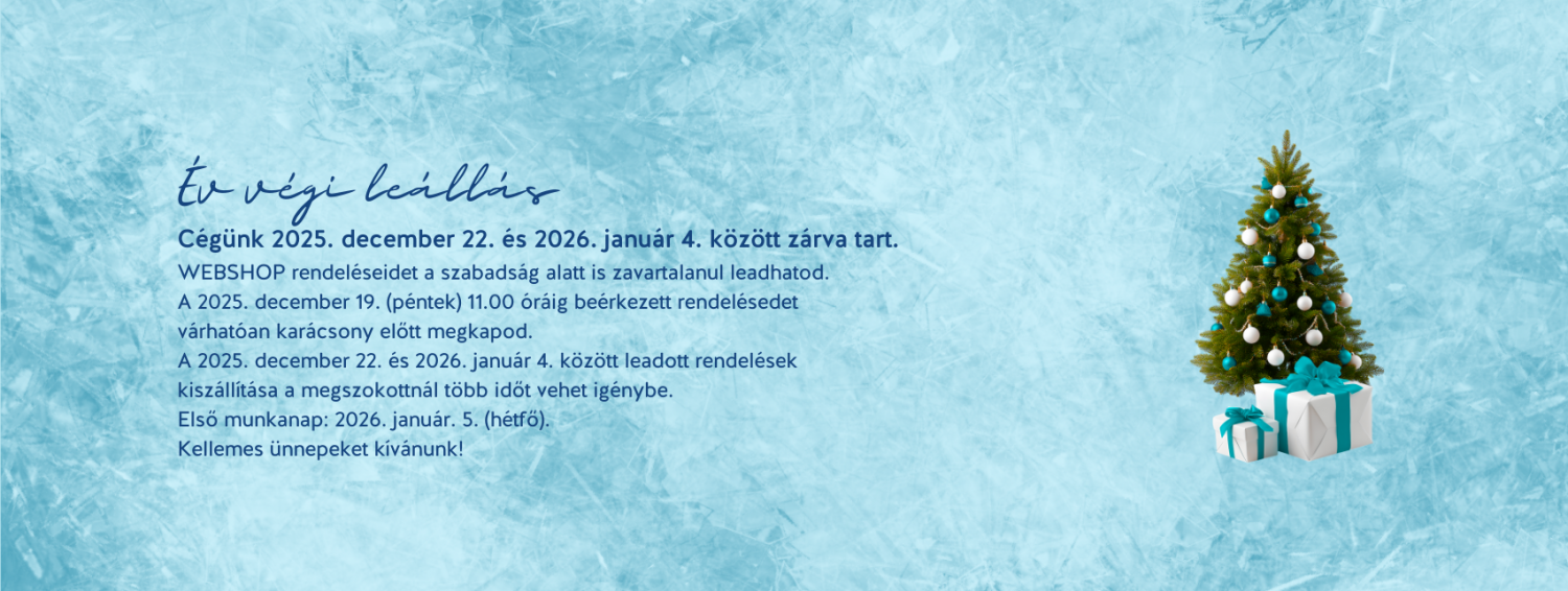 Cégünk 2025.12.22. és 2026.01.04. között zárva tart. Részletes információk a kezdőoldalon.